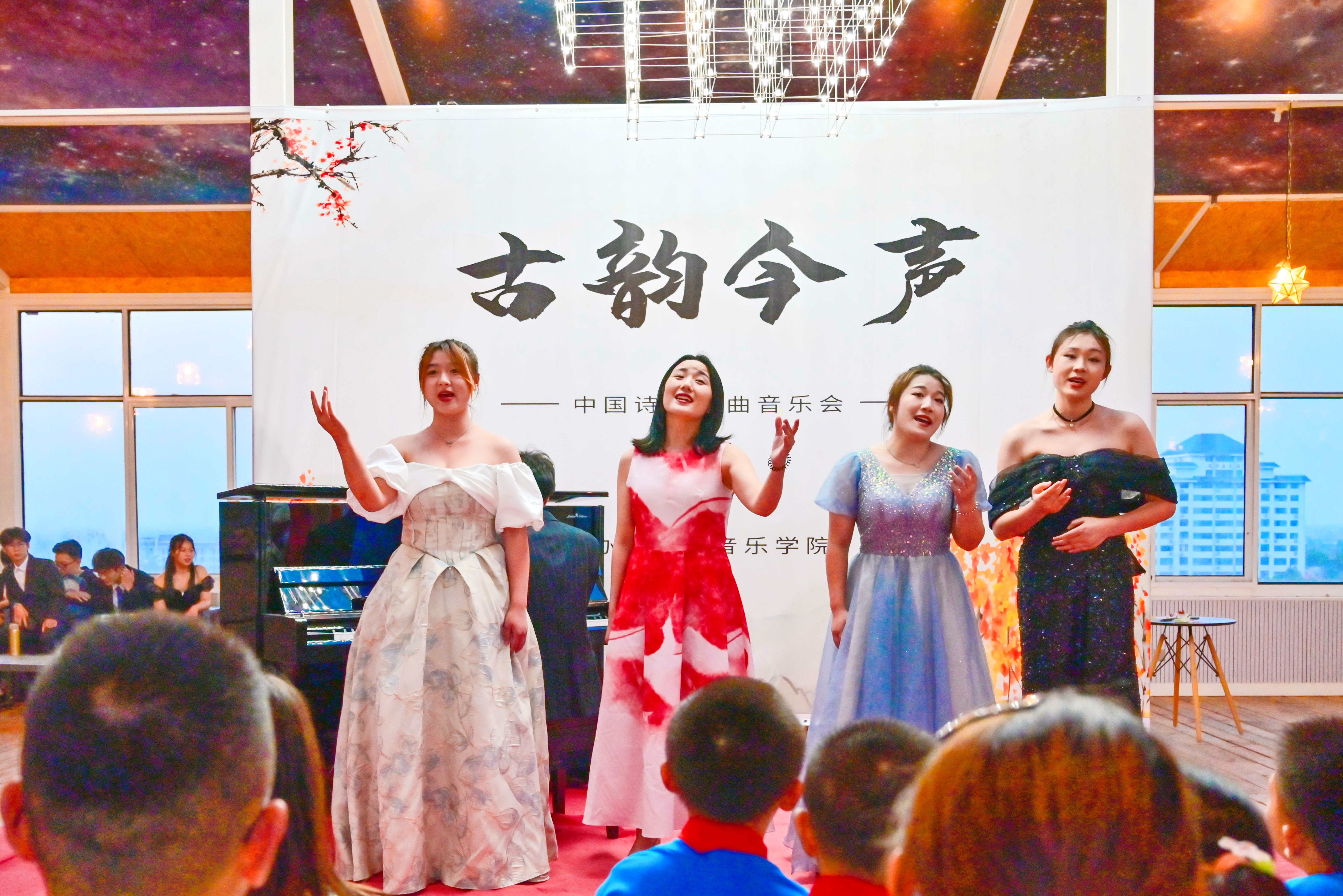 “敕勒川,阴山下。天似穹庐,笼盖四野。天苍苍,野茫茫,风吹草低见牛羊……”一曲蒙古长调缓缓而起,6月14日晚,“古韵今声”中国诗词歌曲音乐会在武汉生物工程学院星空音乐厅拉开帷幕,该校音乐学院教师胡琳媛带领音乐教育专业学生,时而浅唱,时而高歌,全场观众沉浸在“和诗以歌”的世界里。