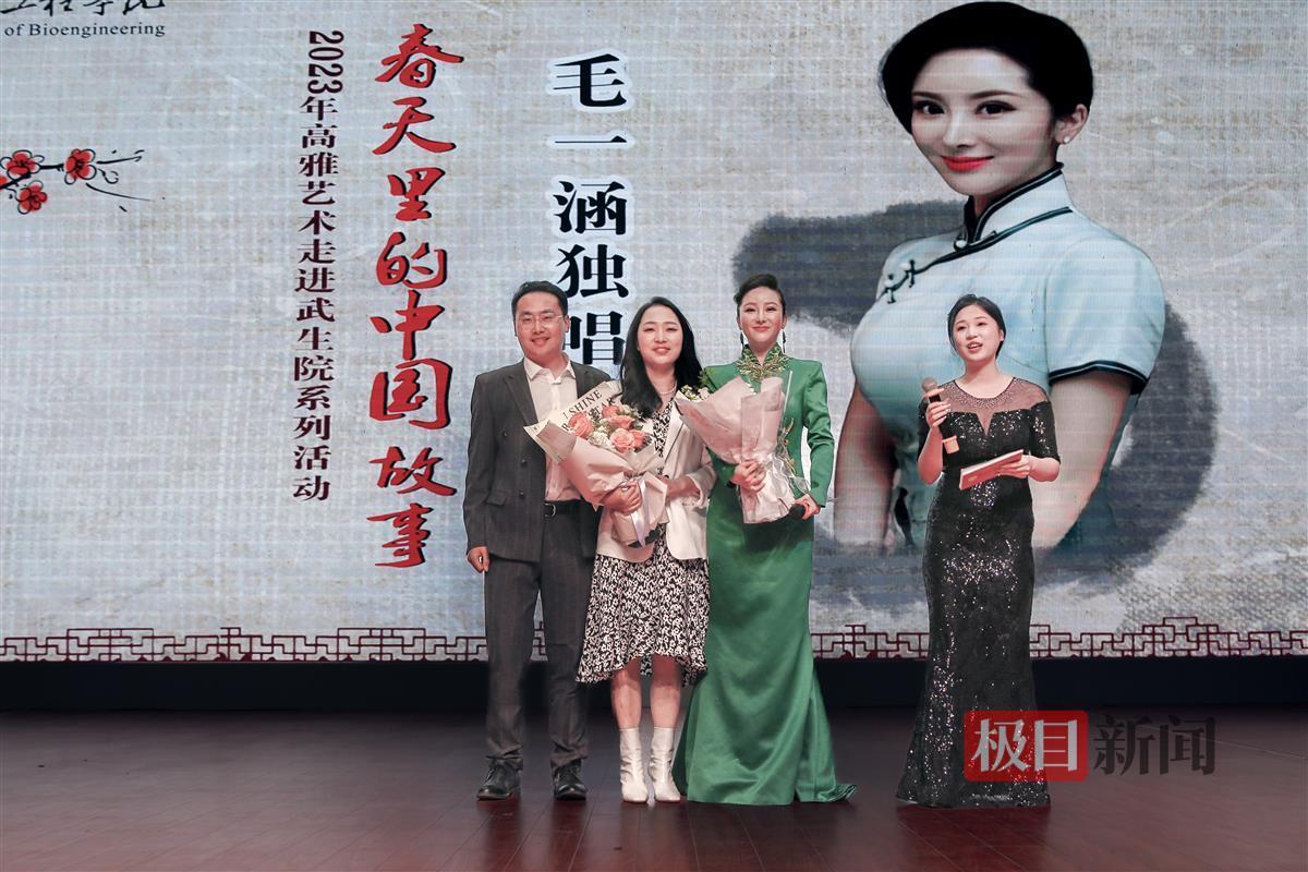 “月亮出来亮汪汪,亮汪汪”“我们的家乡,在希望的田野上……”3月31日下午,武汉生物工程学院问天湖畔大礼堂歌声响起,掌声不断,2023年高雅艺术走进武生院系列活动——“春天里的中国故事”毛一涵独唱音乐会盛情开演。花腔女高音歌唱家毛一涵,带来了一场音乐视听盛宴,千余名师生近距离感受高雅音乐的魅力。