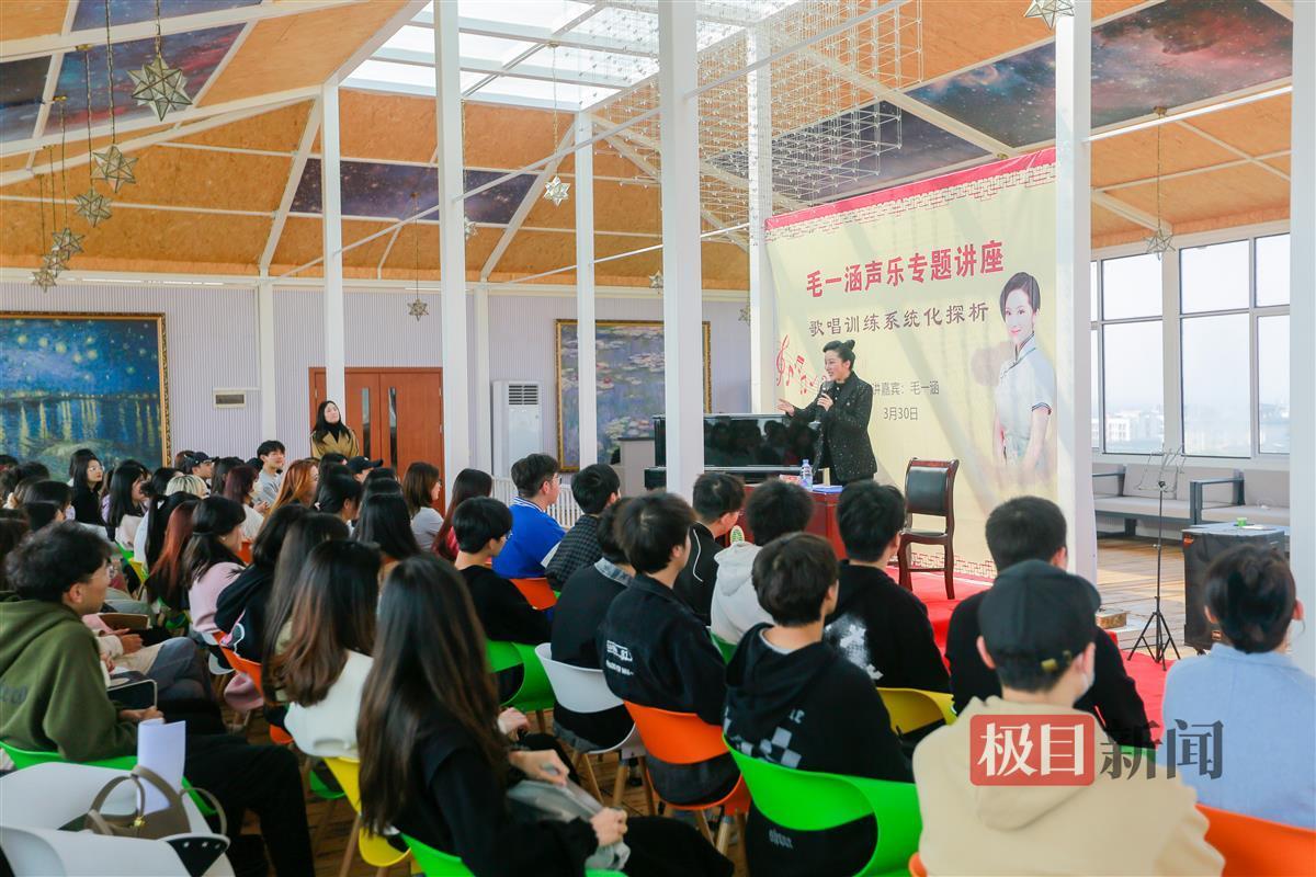 毛一涵是武汉生物工程学院“高雅艺术——校园传播活动”客座教授之一。3月30日,在该校玉兰大厦星空音乐厅,她以“歌唱训练系统化探析”为主题,为音乐学院师生进行声乐专题讲座。在互动现场,毛一涵结合自己多年歌唱表演经验对在场学生进行了指导,有针对性地就气息及发声方式等提出了建议,鼓励这些在艺术道路上执着向前的大学生“歌唱不是一朝一夕就可以练好的,但只要努力,持之以恒地不断练习,就一定会看到进步。”