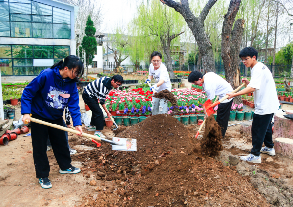 为了做好本次活动,学校劳动教育管理办公室提前在校园里勘察规划,利用学校闲置地段,面向全校学生开展种花技能劳动培训。本着自愿报名的原则,招募对花卉栽培感兴趣的学生。在该校园林园艺学院专业教师的指导下,从花苗繁育、配制营养土到花卉上盆,系统学习盆栽种植及日常养护技巧。