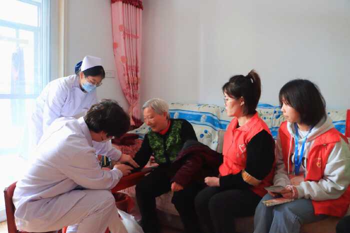 大学生志愿者们为社区居民义诊