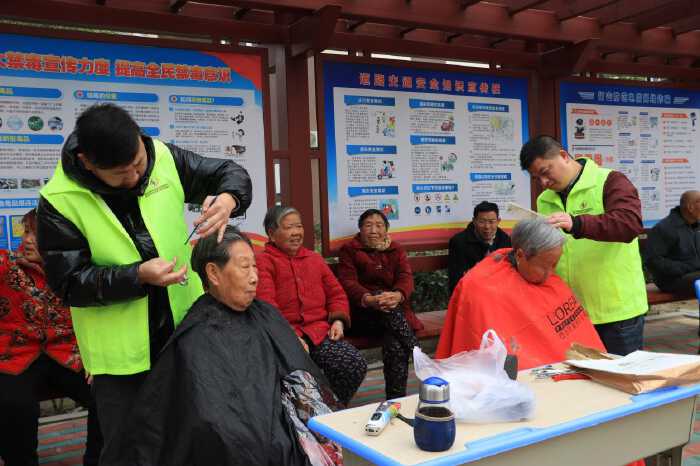 志愿者们为社区居民义务理发