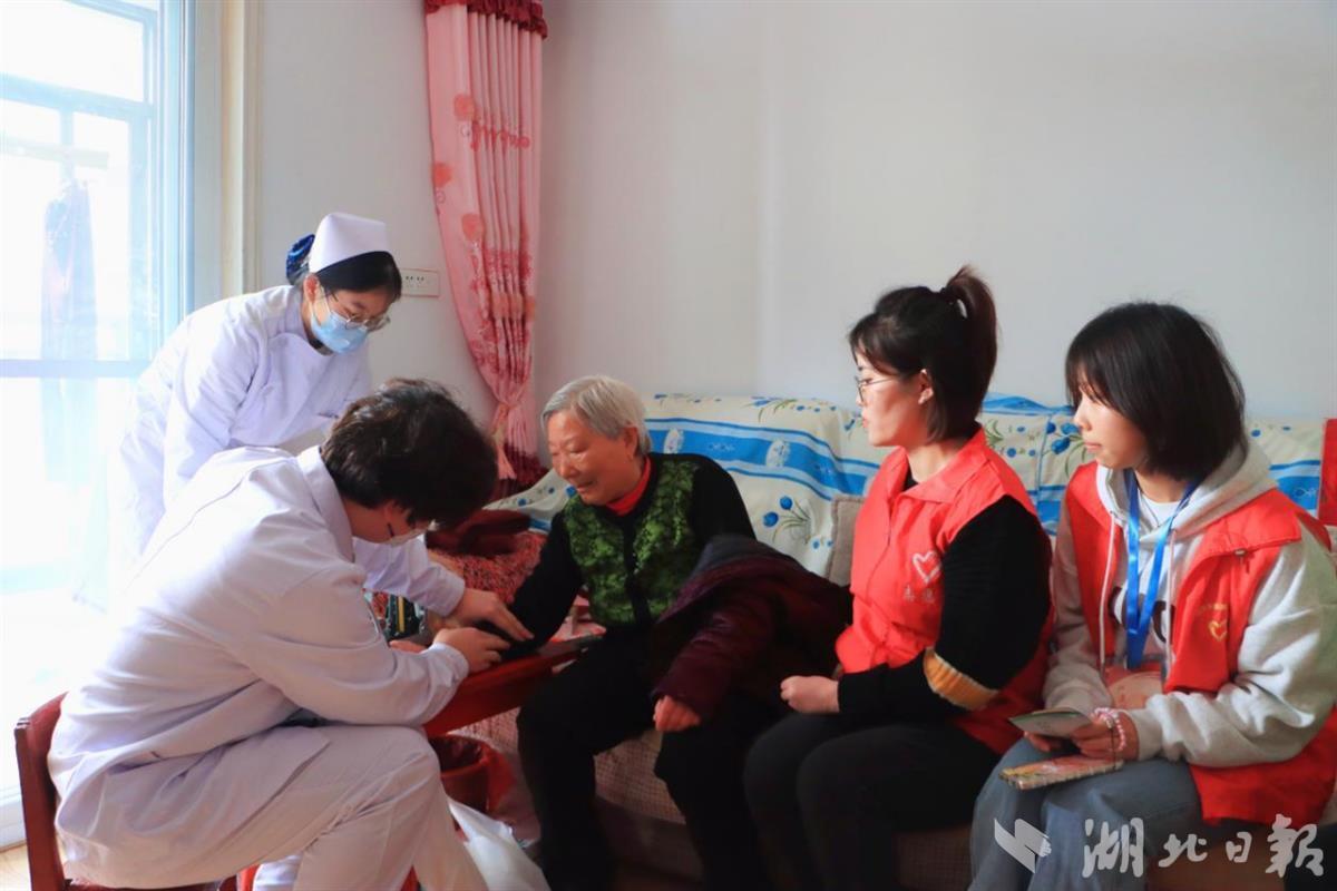 武汉生物工程学院志愿者为“空巢老人”测量血压