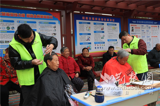 志愿者们为社区居民义务理发。通讯员供图
