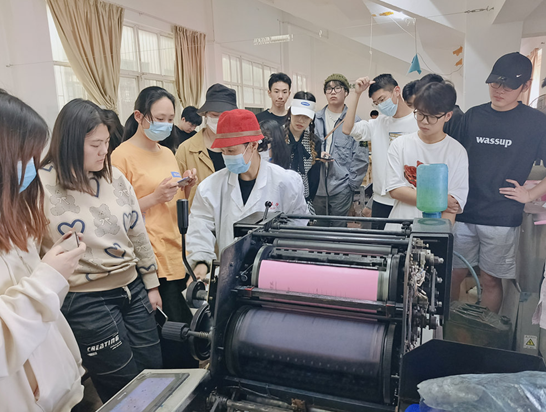 印刷厂技术人员为学生们演示平版印刷工艺