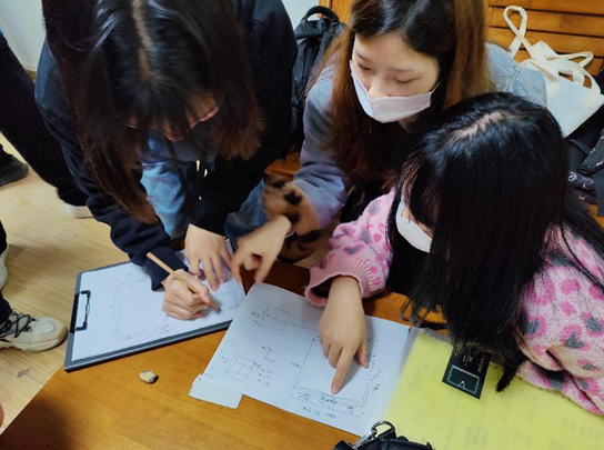 学生在量房现场手绘平面图