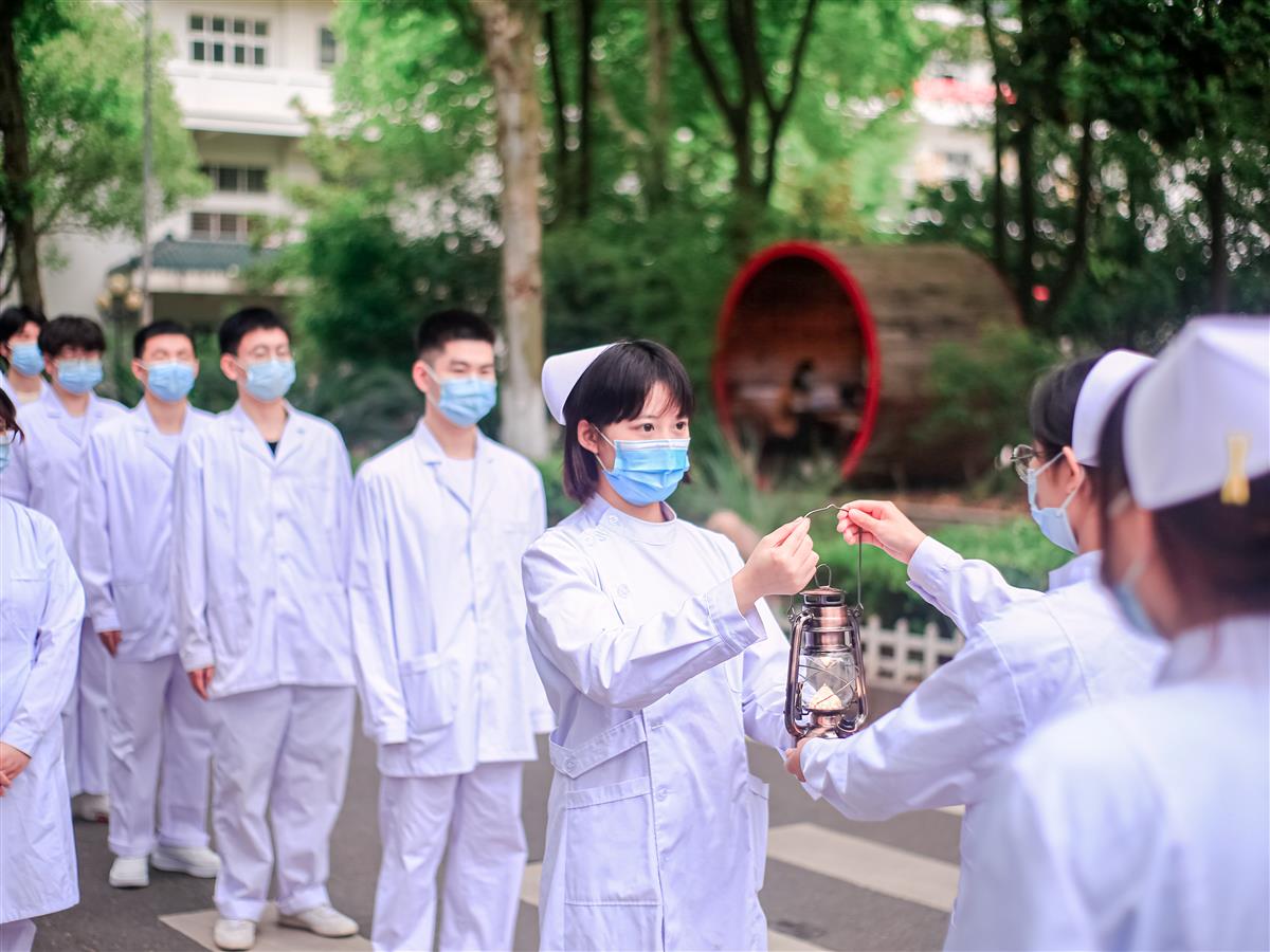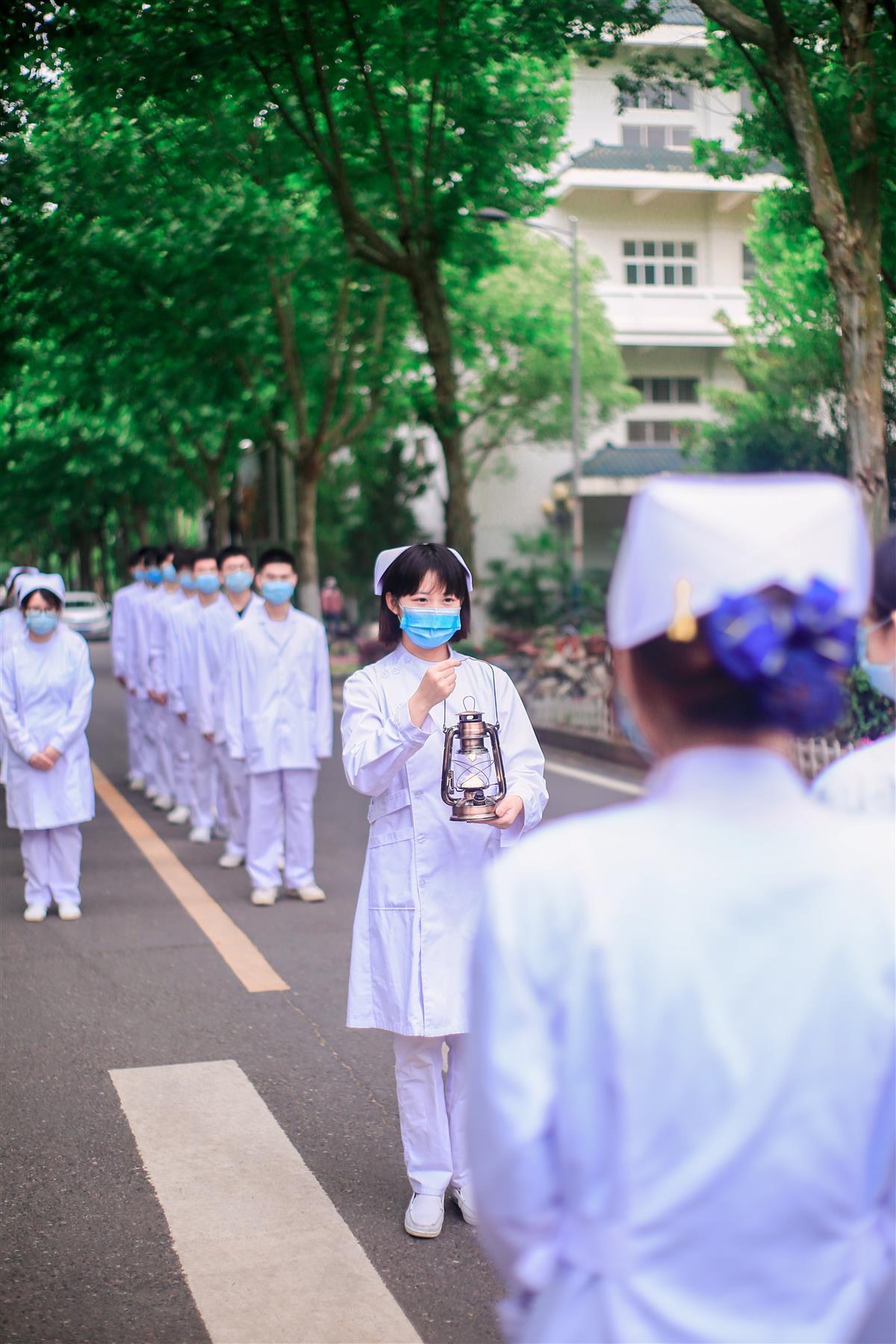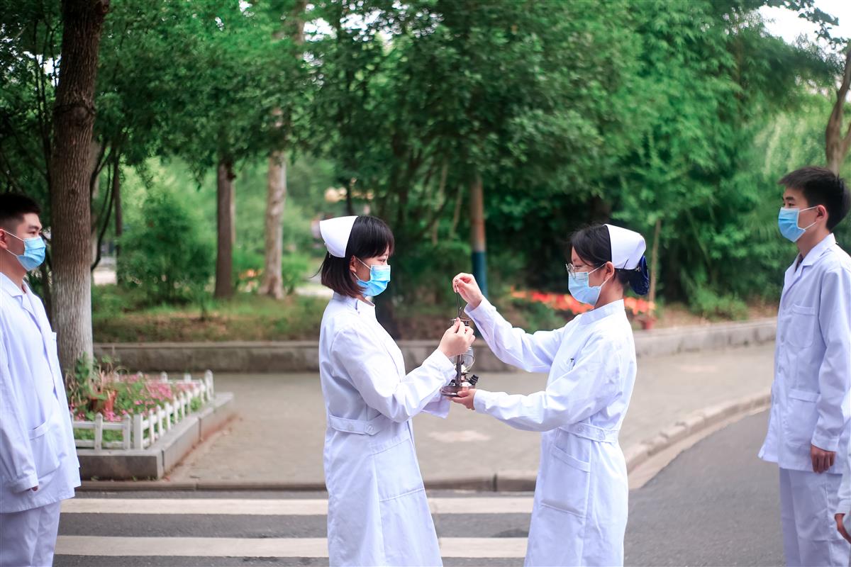5月12日是第111个国际护士节,武汉生物工程学院医药学院举行了一场庄严肃穆的“传灯仪式”。该院护理学专业学生身着洁白的护士服,传递代表爱与奉献的灯盏,在专业老师的带领下重温南丁格尔誓言,表达自己不辱白衣天使神圣使命的决心。