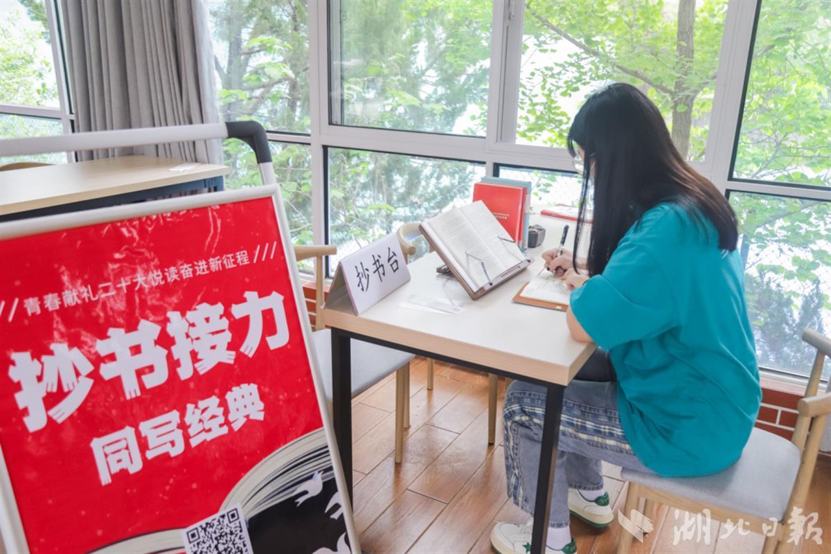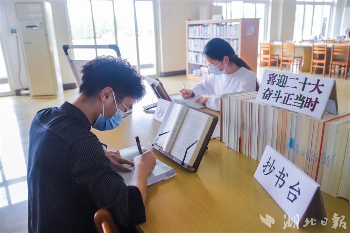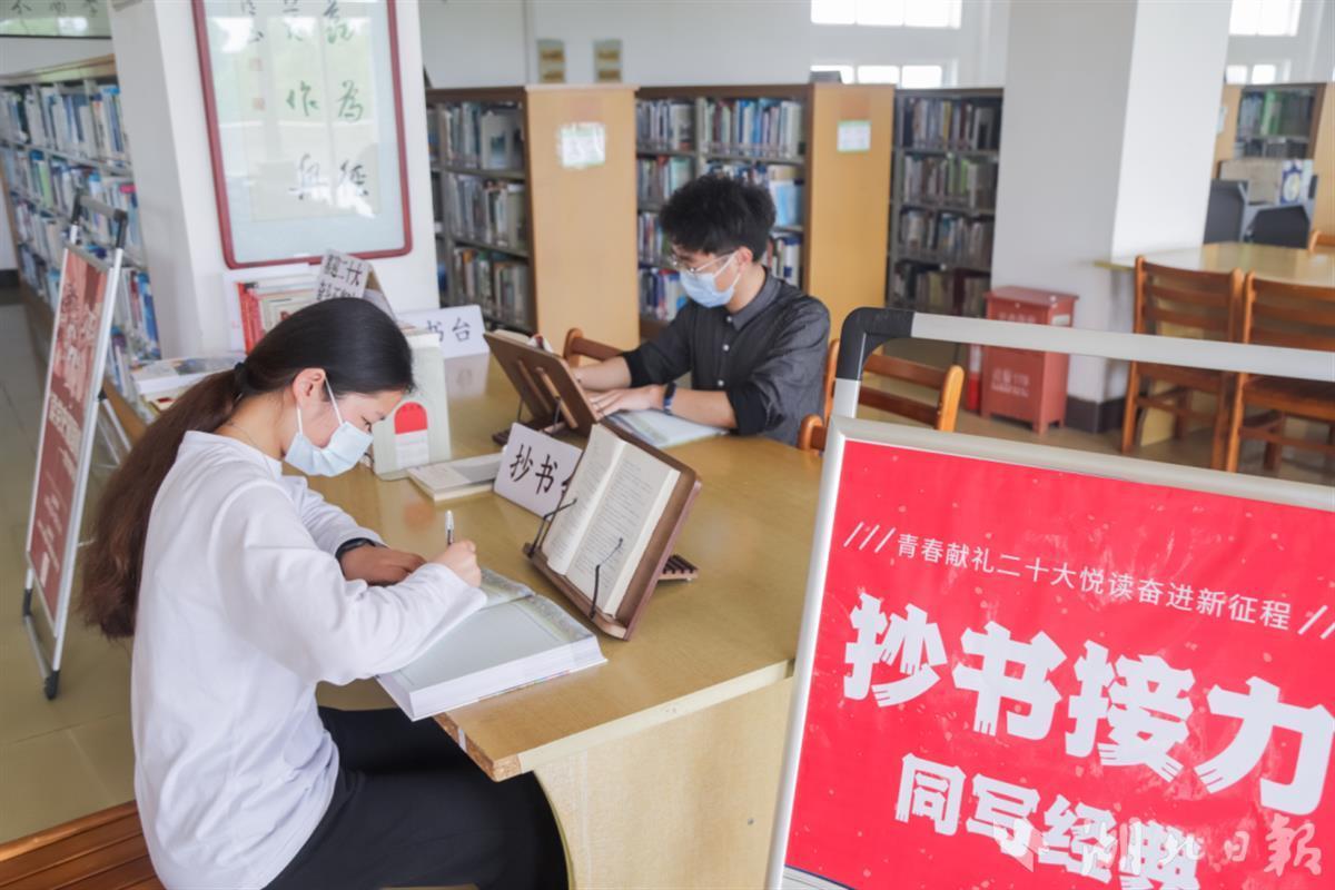 活动吸引了不少师生前来参加,学校图书馆还专门开辟了安静舒适的抄写区域,并提供活页本和笔具,让读者在一笔一划,中进一步加深对红色经典文化的理解与感悟。