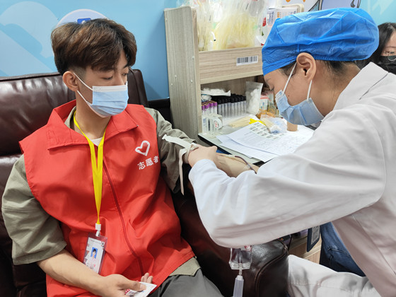 “我们是年轻人,献血对我们身体也没有影响。”趁着志愿服务活动的间隙向志成今天第3次坐上了采血椅。从2020年12月完成献血成人礼至今,每次献血车进校园,他几乎都不会错过。据他介绍,为了带动更多人加入爱心行列,每次活动都有不少同学和他一样,既献血也参与志愿服务,来自生命科学与技术学院的大三学生王成泽也是其中之一。