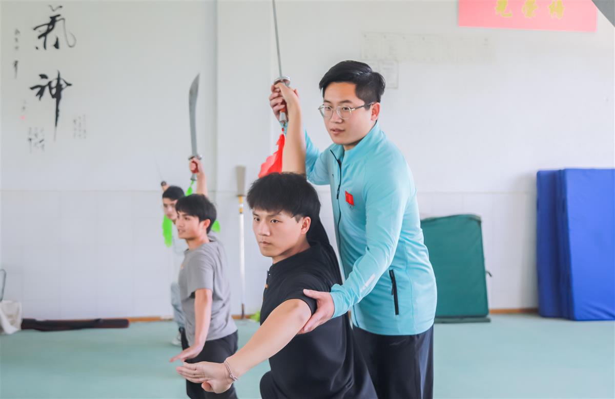罗安邦指导校武术队学生日常训练