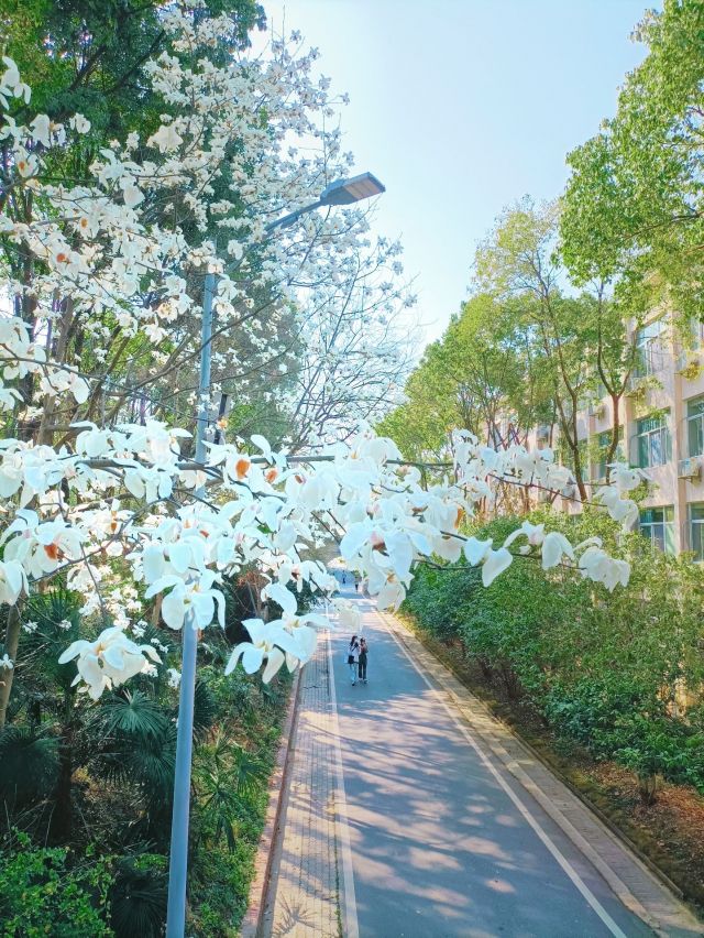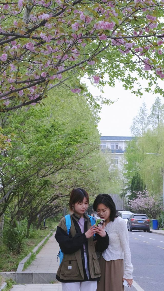 “三月中旬的时候学校很多花都开了,我也很喜欢摄影,就拉着朋友一起去拍照,算是记录一下啦。”来自武汉生物工程学院的丁荷美说。
