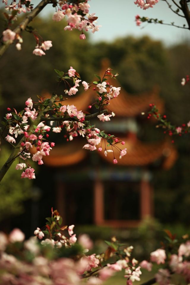 武汉理工大学教学楼前的海棠花。@梦蝶