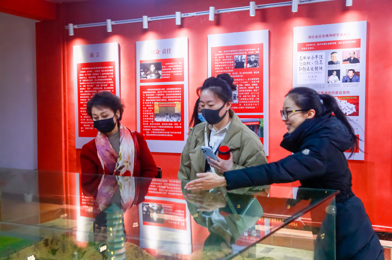 讲座结束后,彭青莲(左一)一行参观该校延安精神教育馆。通讯员供图