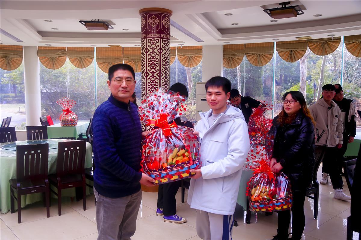学校党委书记江珩还为同学们送上水果大礼包——包括橘子、千禧果、苹果、香蕉、橙子五种水果,分别寓意大“橘”大利、皆大欢“禧”、“苹”平安安、万“香”更新、心想事“橙”。