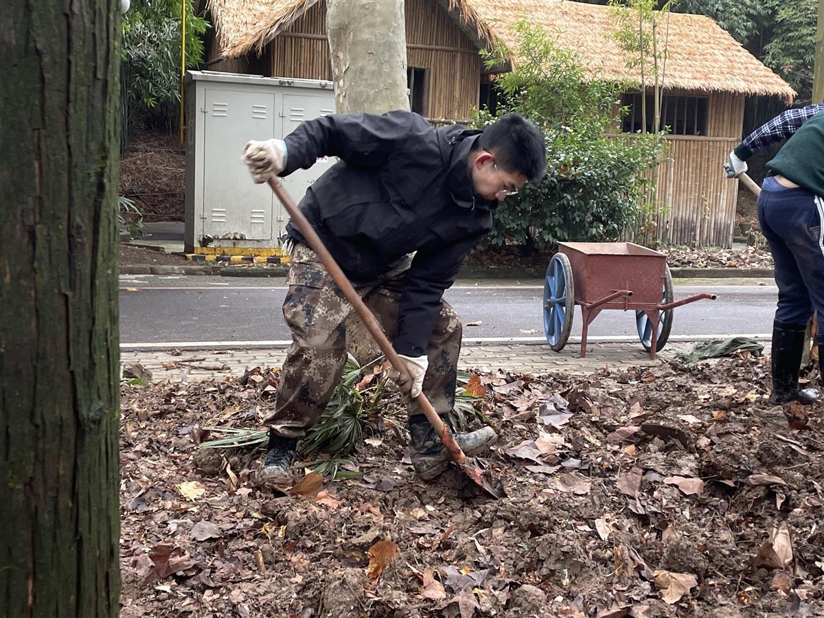 由于陈泳钢是退伍复学大学生,曾当过两年陆军工程兵,且在学校军迷俱乐部担任组织副部长,因此被选为“双创冬令营”学生负责人。每天,指导老师会给营员分组安排工作,有人负责清理杂草,有人打扫卫生死角,有人在智汇农场翻土。陈泳钢则主要负责组织学生和思想动员,他说:“劳动量其实挺大的,但大家都是自愿参与,为了同一个目标努力,所以挺配合。”
