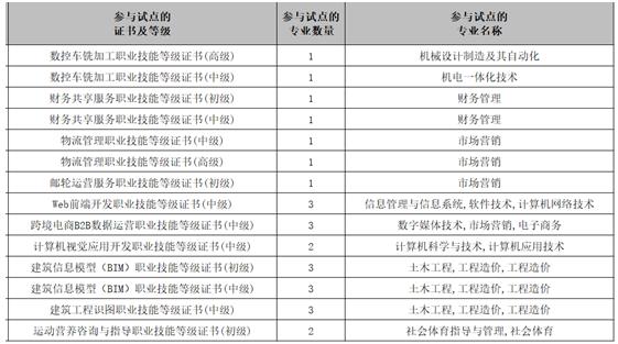 图为武汉生物工程学院获批"1+X"职业技能等级证书试点基本情况