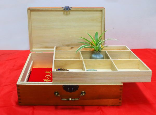 长江日报-长江网记者看到黄铜锁香樟实木箱较为小巧,内设二层,上层方格可放置各类奖牌、证件及贵重饰品;下层可放置毕业证、学位证、荣誉证书以及其他重要证件。