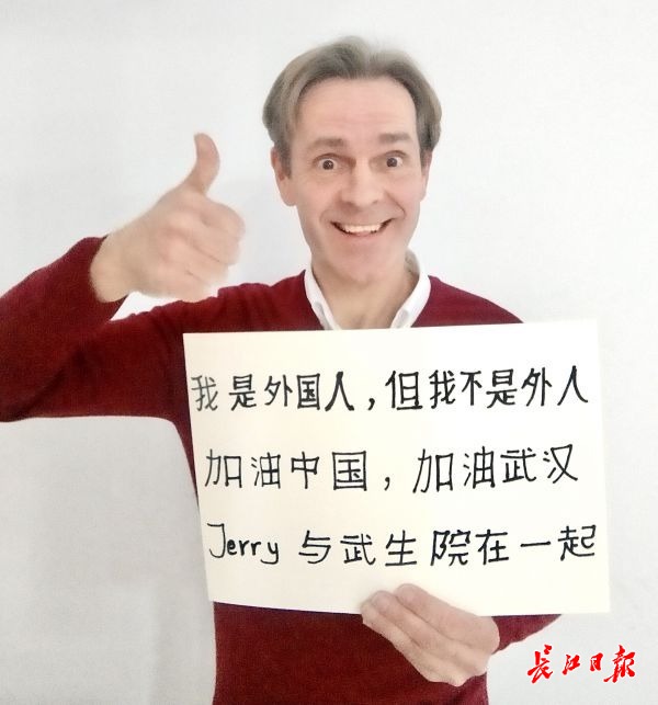 长江日报-长江网2月20日讯“我是外国人,但我不是外人,加油武汉!”在武汉战疫正酣之时,武汉生物工程学院外教——来自比利时的Jerry Van Oudenhove选择留下来,与师生一起投入武汉抗疫,并为这座城市加油鼓劲。