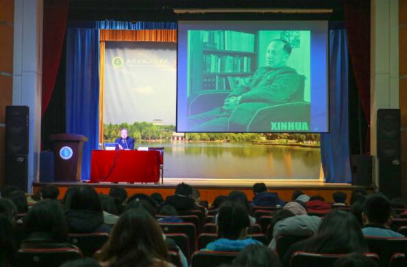 张瑜教授是钱学森在中国科学技术大学近代力学系带的第一届学生。他用“百人一院士,千人九将军”为引言,通过亲身学习研究经历和大量珍贵史实照片,从“钱学森先生制定教学计划”、“钱学森先生讲授星际航行概论课”、“钱学森先生指导科研实践”、钱学森先生的爱国情怀”等四个方面,为师生们生动地讲述了人民科学家钱学森在教书育人方面鲜为人知的故事,展现出钱老光辉的人生历程,坚持真理、严谨求实的大师风范。