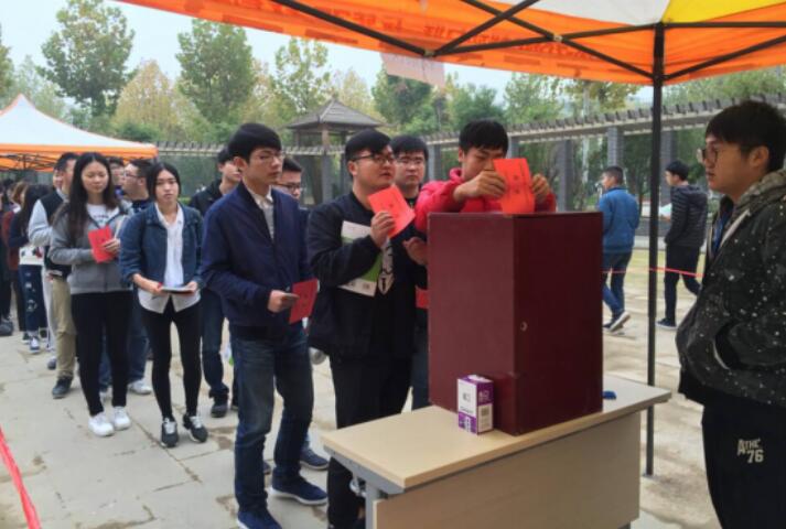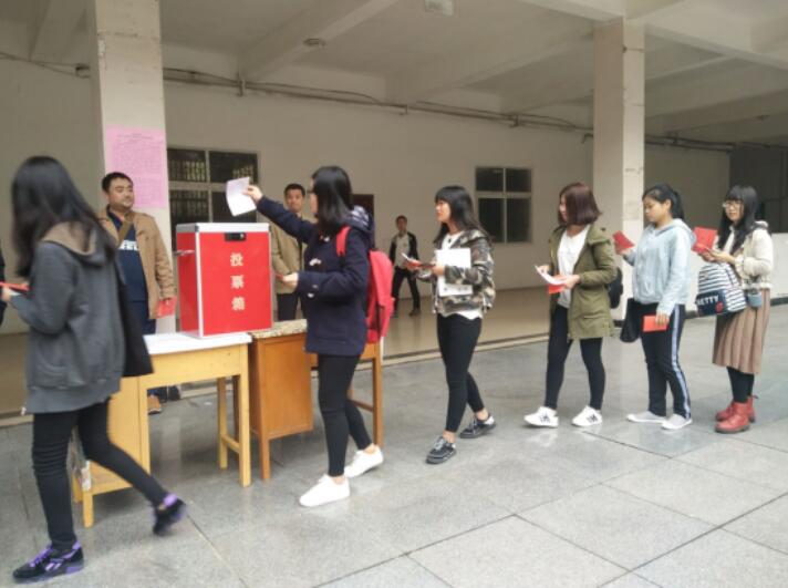师生参加投票,行使自己的民主权利。