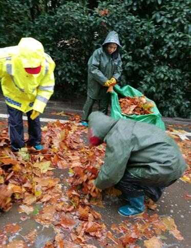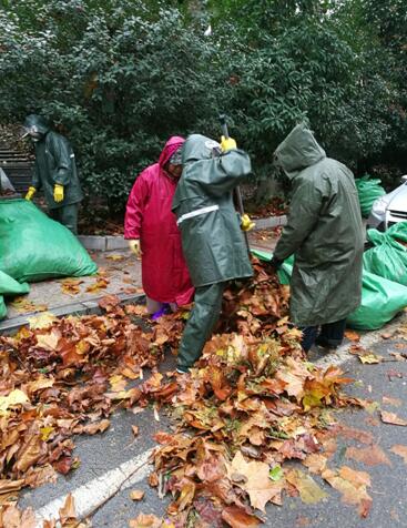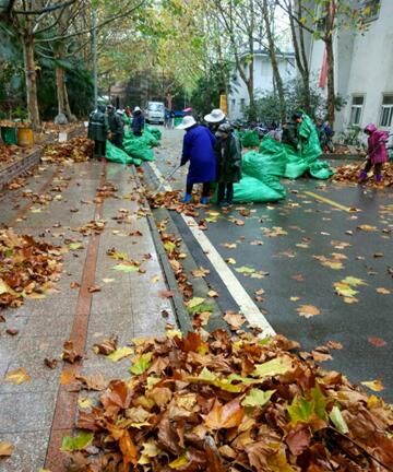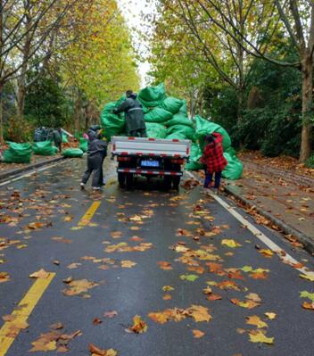 为尽快解决师生出行困难,后勤环卫工人每天大清早即开始顶着寒风雨雪,连续奋战上10个小时,奋力清扫校园处处道路及活动场地上的落叶,并将落叶装入大口袋,扛上大货车,再一车车运往它的新“家”——附近肥料厂,用以制作有机肥料。他们不愧是全校师生一致盛赞的美丽园丁。