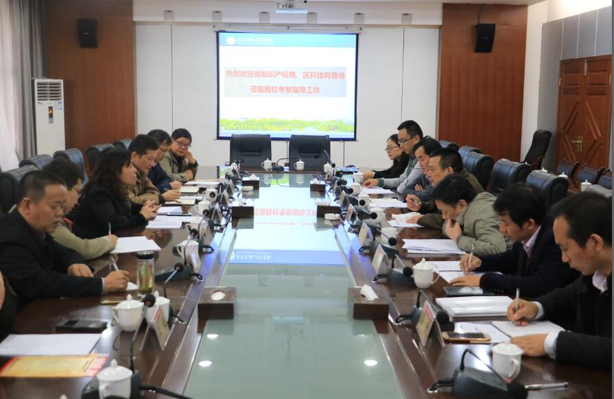 湖北省知识产权局专利管理处张鲁、省知识产权发展中心信息应用部主任杨金才,新洲区科技局王锐,我校科技处处长袁飞荣、创业学院院长助理苏以全、应用生物技术研究中心副主任徐飞等参加调研活动。