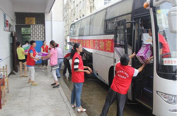 4日上午7点,由副校长侯祖飞教授带队,青春护航学院执行院长兼首席心理专家吕慧英教授,“杨子威献血捐髓志愿者服务队”名誉队长杨子威,“中国大学生自强之星标兵”、“中华孝亲敬老楷模”许大卉,“一缕阳光爱心接力社”负责人骆群曙,土家剪纸文化传承人游璐等10余名师生组成的志愿服务队,带着棉被、方便面、矿泉水、卫生纸等价值3万余元的生活急需品,来到新洲区三店街灾民安置点,将爱心物资送到灾民手中。