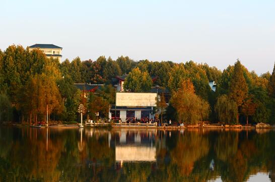 秋阳倒影射疏林