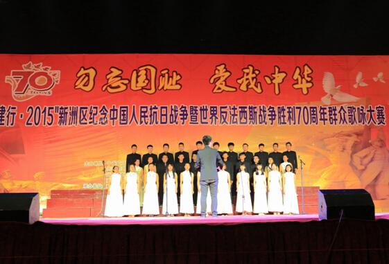 本网讯(通讯员 曹莉芳)近日,在新洲区委宣传部、新洲区人民武装部等部门联合主办的新洲区纪念中国人民抗日战争暨世界反法西斯战争胜利70周年合唱比赛中,我校大学生合唱团倾情演唱合唱曲《在太行山上》,昂扬的姿态和恢弘的气势震撼全场。最终,从参赛的25支队伍中脱颖而出,获得金奖,同时我校获得优秀组织奖。