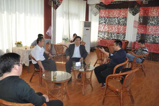 王振旭(中)一行在大学生创业茶吧听取学校“双创”工作情况介绍