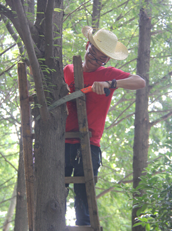 园林系园林工程技术专业的袁修整同学在校内园林整枝修理及防治病虫害团队实践。他说:“虽然辛苦,但是这种实践经历让我的动手能力更强了,对于将来的就业,我更加有底气!”