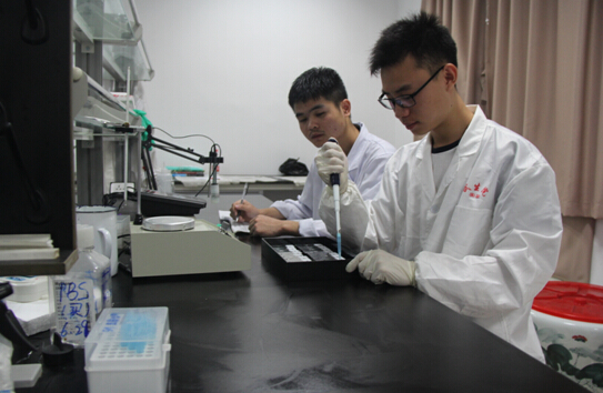 生命科学与技术学院生物工程专业的黄磊同学(右)今年暑期参加了该院教师郭晓红博士的国家自然科学基金项目课题组。他说:“我在实验室跟着郭老师做实验,学到了很多知识,感到特别充实。”