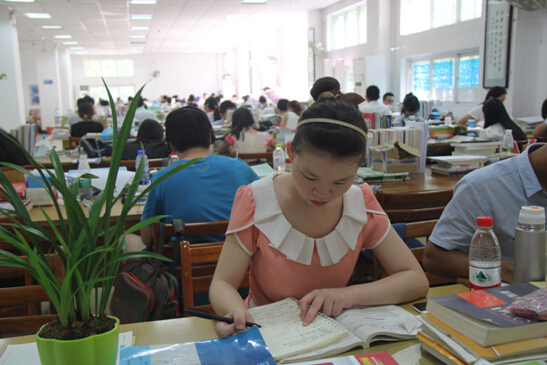 管理学院市场营销专业的杨敏莉同学正在图书馆进行硕士研究生复习备考。她说她的目标是中南财经政法大学。