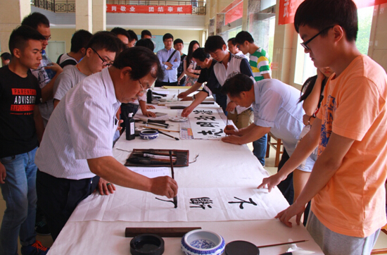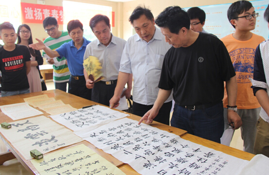 ——孙恩道等著名书画家担任我校校园书法大赛评委并挥毫泼墨