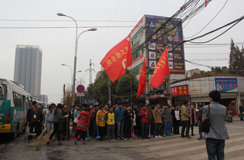 本网讯(记者 肖亚慧)11月28日下午,我校200余名青年志愿者来到阳逻街道参加周末大扫除活动,以自己的实际行动,为武汉市创建全国文明城市贡献一份力量。
