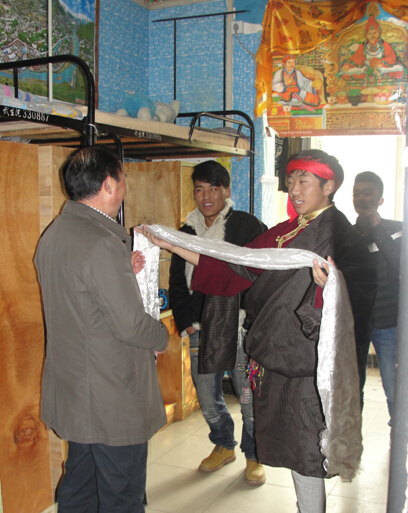 走进二楼一间全部为西藏籍学生的寝室,李斌成亲切询问他们“家是哪里的”、“生活得习惯不习惯”,身着民族服饰的藏族同学们立即将一条寄托着美好祝愿的哈达敬献给他。在绿植创业寝室和手工艺品寝室等特色文化寝室,李斌成赞扬寝室干净整洁、特色鲜明、布置温馨,并鼓励创业的同学们继续发展。