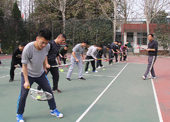 体育系柳华清老师正在给学生上网球课
