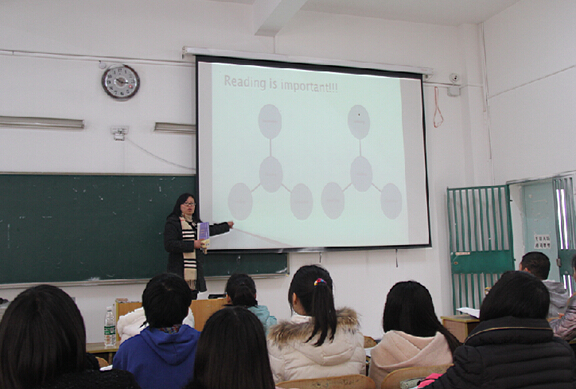 外国语学院丁秋芸老师正在讲授《英语阅读》课程