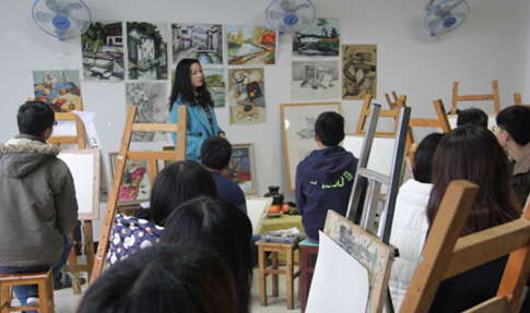 《造型基础》课上,肖丽老师以学生作品分析导入,同学们全神贯注。