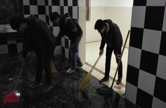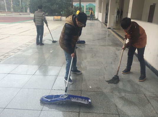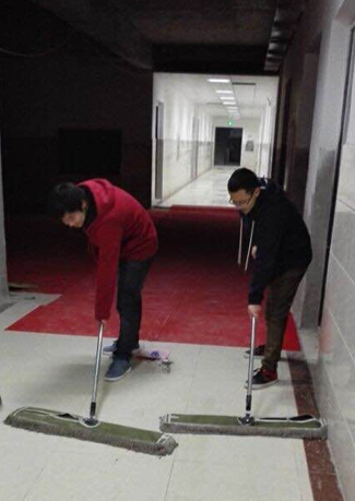 对刚投入使用的新建机电大楼进行卫生大清扫