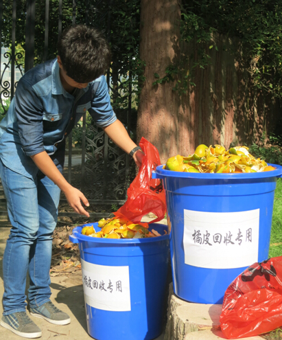 同学们主动将橘皮送往指定回收处