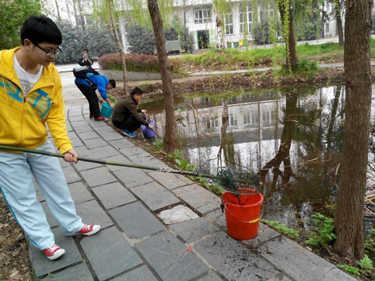本网讯(通讯员徐珩川 摄影 戴远帆)时值5月1日国际劳动节,我校首批景观湖湖长们仍然坚持岗位,为美丽校园建设贡献自己的力量。