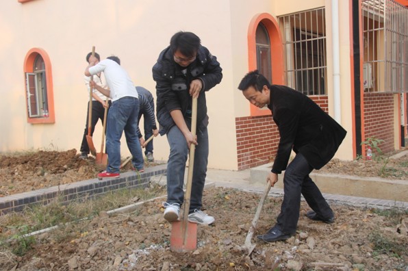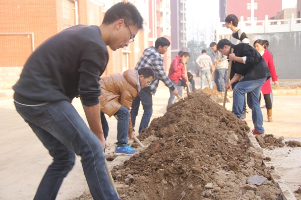 园林系副系主任丁健博士等干部、教师与学生一起参加义务劳动