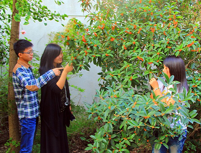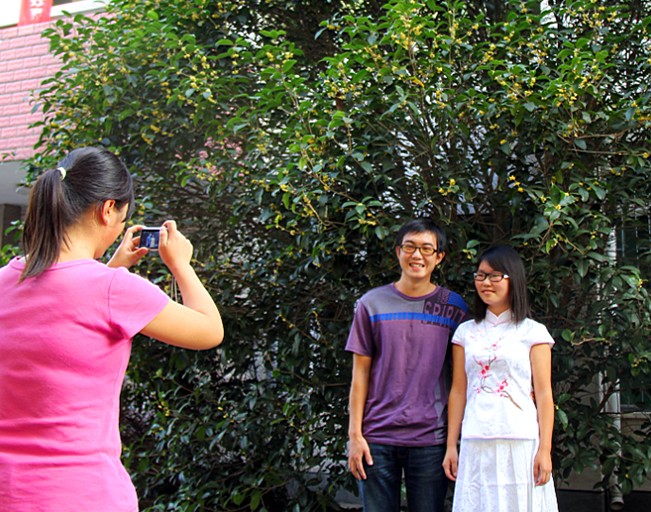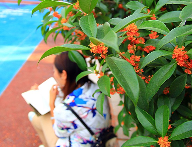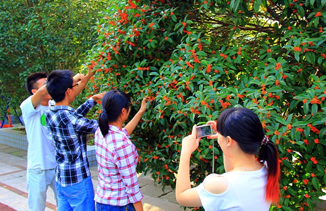“枝生无限月,花满自然秋”。我校广植的金桂、银桂、八月桂等各种桂花品种悄然盛开,桂香四溢。国庆长假天气晴朗,空气清新怡人,师生们利用这难得的时光,在校园各处或赏桂品香,或桂下勤读,或合影留念,一片勃勃生机。