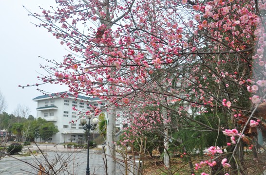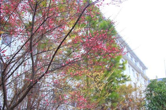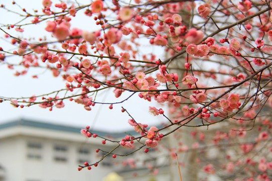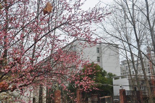 胭脂桃颊梨花粉,共作寒梅一面妆。(摄于学生宿舍—梅园)