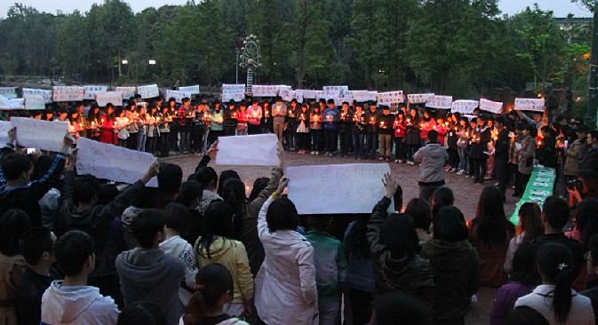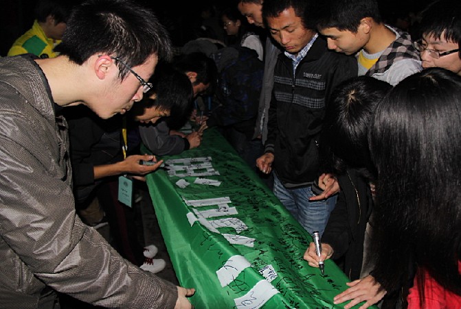 本网讯(通讯员 杨乐 摄影 陈冲 孙颖)“雅安坚强,四川加油,武生院和你心连心”怀着对雅安同胞的祝福,4月21日晚七时,我校200余名师生举行心系雅安的祈福祝愿活动。