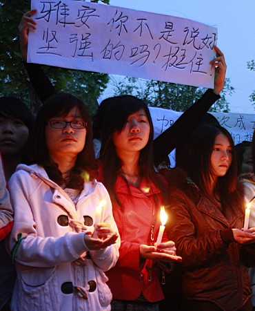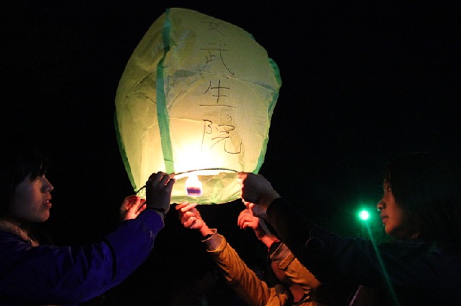 围着烛光组成的心形,绑着绿丝带,伴着背景音乐《wish》,在场师生一起双手合十为雅安地震遇难同胞默哀。“雅安坚强,四川挺住,我们与你同在” 师生们一起放飞了带着祝福的孔明灯,飘向夜空,为远方的雅安同胞祈福。