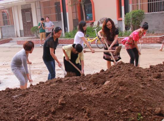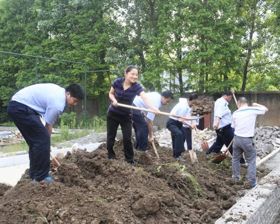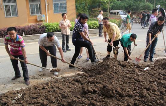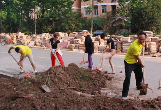 本网讯(摄影 刘增 黎重远 蒲斌春)5月21日下午,生物科技系、食品工程系、体育系、保卫处等单位的近百名教职工,来到长河港湾教职工住宅区(三期),参加义务劳动。平日站在三尺讲台的老师们头顶烈日,手持铁锹,干劲十足,用自己的双手美化家园。