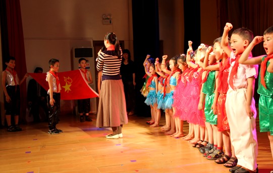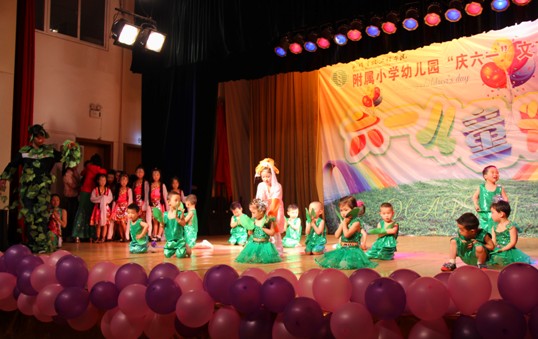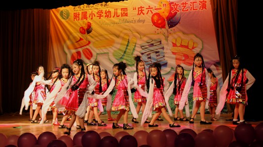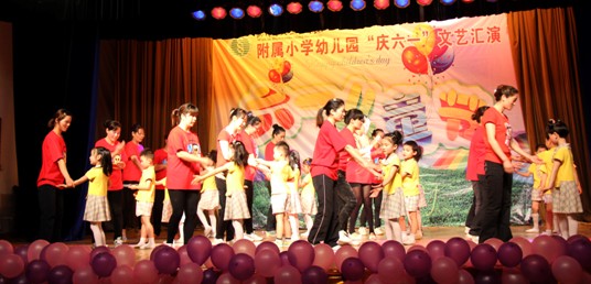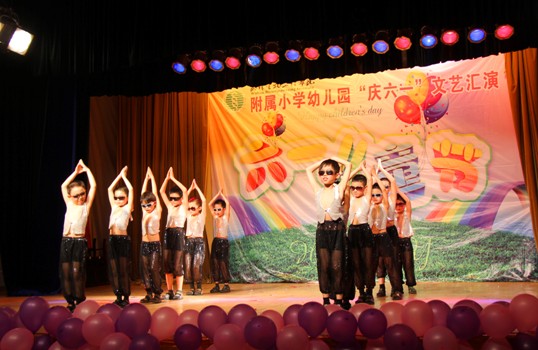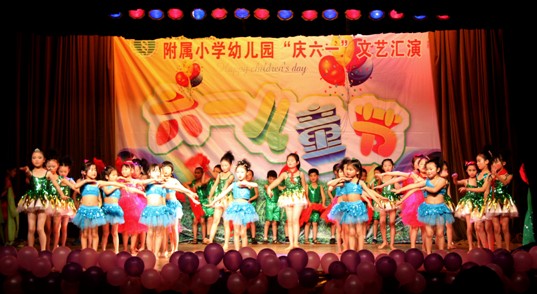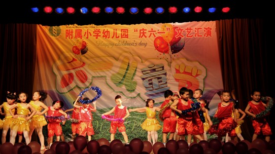 本网讯(大学生记者团 杨乐 陈才坡摄)5月31日,我校小礼堂热闹非凡,校附属小学、幼儿园小朋友的家长们在观众席上翘首以待,静候孩子们在台上的精彩表演。