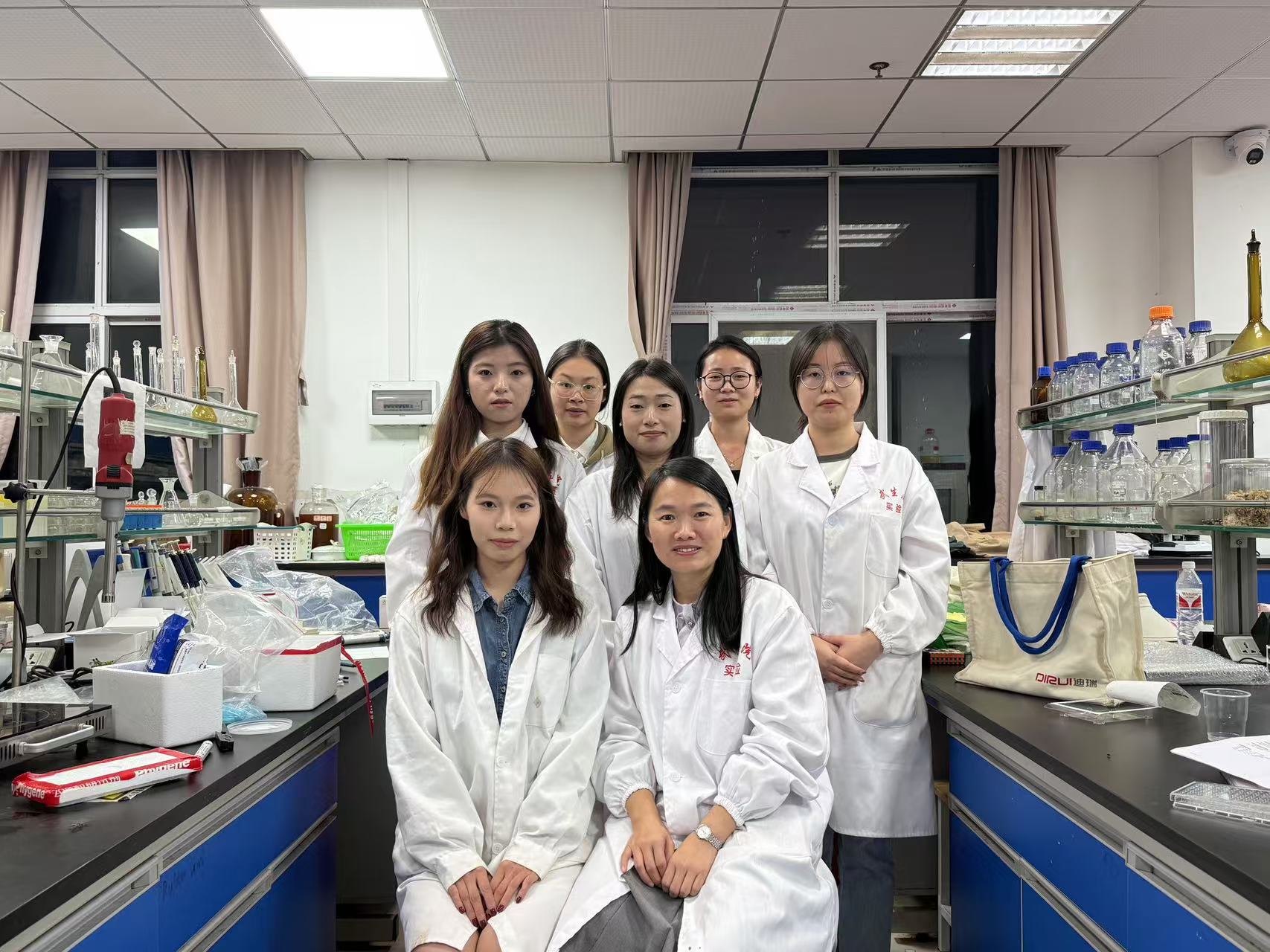 聂丽(前排右)和学生一起做实验